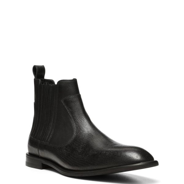 Our ROGELIO chelsea boot is a sophisticated style that’s sure to become an indispensable part of your work-to-weekend wardrobe. Crafted with lizard print leather uppers, this pair rests on thunit outsoles, while memory foam padded insoles, elastic side gores and back pull tabs offer unrivaled comfort and ease.