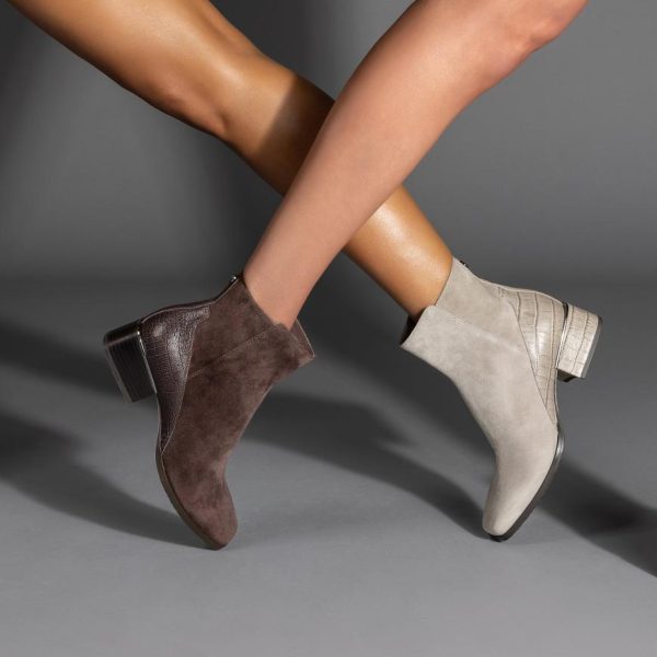 Revamp your fall style with the AZIA bootie that instantly adds sophistication to any outfit. Crafted with a suede upper accented by croco leather in a square-toe silhouette, this style is set on a durable rubber outsole. It’s made comfortable by a memory foam insole.