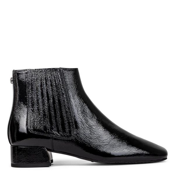 Our DASIA ankle boot is a sophisticated modern take on the classic Chelsea boot that’s sure to become a favorite. Crafted with a crinkle patent leather upper, it rests on a flexible rubber outsole. A memory foam padded insole, stretch side gore and side zipper offer unrivaled comfort and ease.