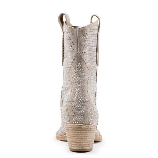 Go western glam in the HAISLEY boot. Glittering with mini studs, the classic silhouette features a snipped toe and stacked heel. A soft calf suede upper and leather sole keep the design comfortable, while double pull loops make this cute boot easy to slip on.