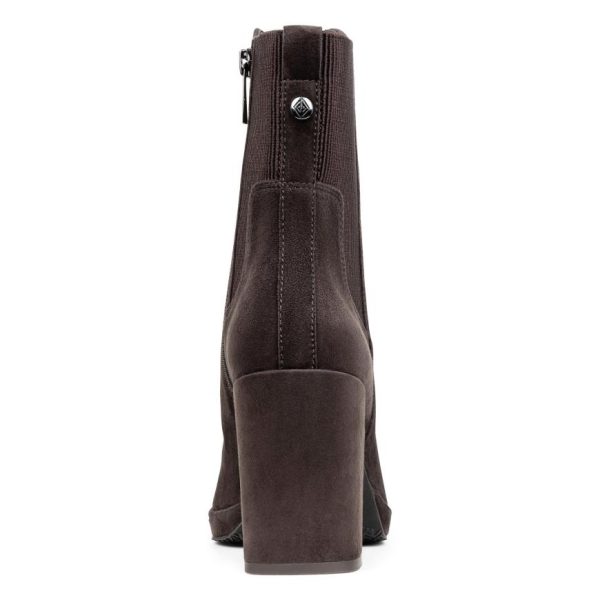 ROSEMARY rises high on a sleek covered block heel and platform. Featuring a genuine suede upper with stretch panels for added flexibility, this bold bootie is a modern classic. A memory foam insole and rubber outsole provide comfort and traction, while an inner zip closure makes the shoe easy to pull on and off.