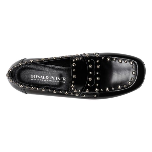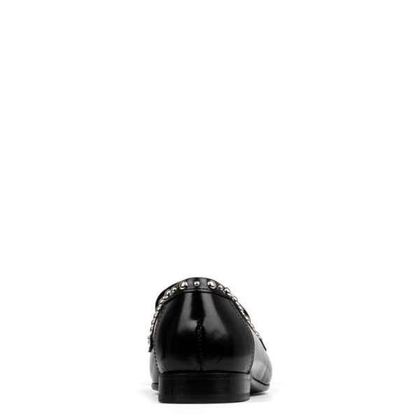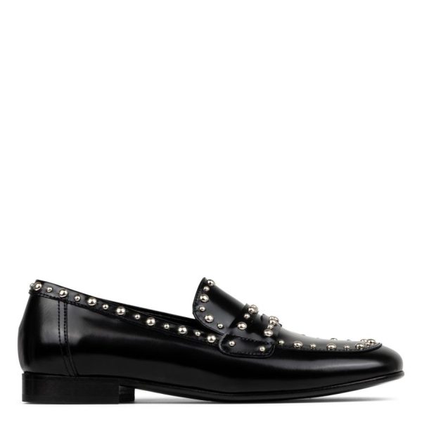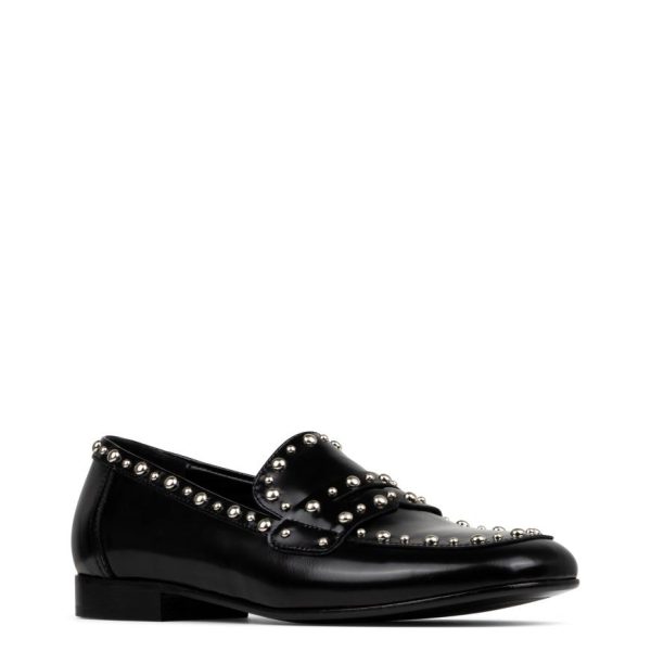 The EVLINE modern penny loafer redefines classic style with a contemporary twist. Featuring a soft square toe and round stud accents, this polished design is finished with a leather sole and rubber insert for flexibility and comfort.