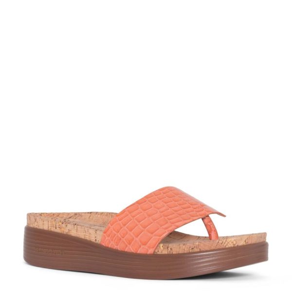 The FIFI is our best-selling sandal and is made with a comfortable molded cork footbed. Transition seamlessly from season to season with this single-band slide sandal featuring a croco patent leather upper. A rubber unit bottom and thin toe-post provide added support, while a classic round toe completes the style.