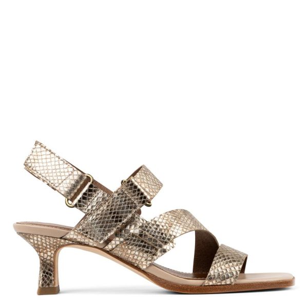 The KAMELE sandal is a beautiful and sophisticated design, featuring a strappy upper made from vintage metallic leather and a sculpted low heel. With its square-toe silhouette, memory foam padded insole and buffed leather outsole, this style provides all-day comfort.