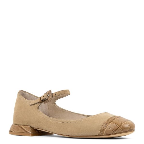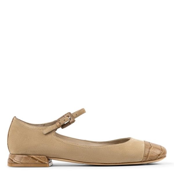 Turn heads with the LARRO Mary Jane in soft suede, featuring a refined croco-printed toe cap and a matching covered heel for added texture and sophistication. The adjustable instep strap provides a secure fit, while the memory foam insole offers lasting comfort from day to night. Finished with a leather sole and a rubber pod, this shoe ensures both style and traction in every step.