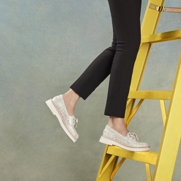 Effortlessly blending laid-back sophistication with classic details, the LILLITH boat shoe offers a sleek brushed metallic upper paired with leather laces and metal grommets. The memory foam padded insole keeps you cushioned all day, while the lightweight Lite Lift EVA sole ensures easy movement. This shoe is perfect for both casual strolls and weekend adventures.