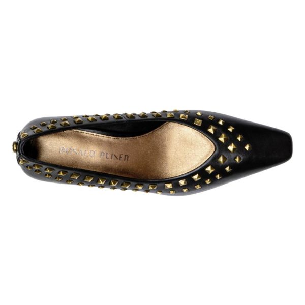 Heel-o, comfort. The calf leather BERNICE pump gently hugs your foot with a slightly elasticized topline that provides a superior fit. Leather lining, memory foam insole padding and a flexible outsole add even more comfort to this bold day-to-night style in a tapered square-toe silhouette accented by brushed bronze pyramid studs and a metal-finished heel.