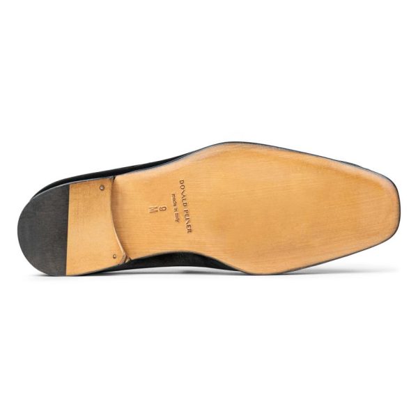Make a statement with the JAEGAR loafer in leather-trimmed velvet. This classic Venetian slip-on has a memory foam padded insole for walk-on-air comfort and is set atop a leather outsole. Finished with a hand-stitched vamp. Made in Italy.