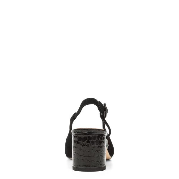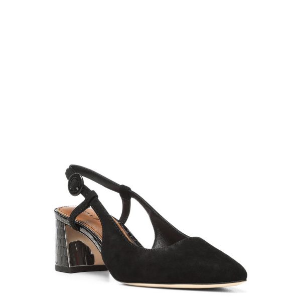 A breath of fresh air, the SONG slingback heel in smooth suede is a style that will take you from day to night. Its sleek croco patent block heel with electroplated detail gives you the perfect amount of height yet keeps you comfortable on your feet. A memory foam padded insole and buffed leather outsole add to the ease of this sophisticated shoe. Finished with an adjustable buckle closure.