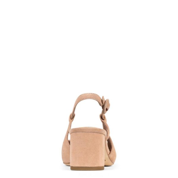 A breath of fresh air, the SONG slingback heel in smooth suede is a style that will take you from day to night. Its block heel covered in suede leather and accented by electroplated detail gives you the perfect amount of height yet keeps you comfortable on your feet. A memory foam padded insole and buffed leather outsole add to the ease of this sophisticated shoe. Finished with an adjustable buckle closure.